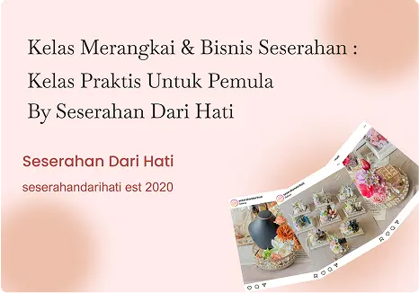 Diajarin merangkai & bisnis seserahan sama praktisi yang berhasil dapet 50 pesanan box/minggu dalam 6 bulan.