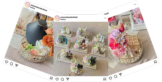 Sekarang, Aku sudah punya tim yang solid, dan usahaku juga berkembang ke produk lainnya seperti mahar dan ring box😍. Alhamdulillah, karena ternyata bisnis seserahan itu valueable banget. Bayangin aja, sekarang aku bisa dapat orderan 70-150 box per minggu. Karena itu, dari yang awalnya aku cuma dapat ratusan ribu sampai jutaan per bulan, sekarang aku bisa dapetin puluhan juta cuma dari bisnis seserahan aja. Seru kan?💕